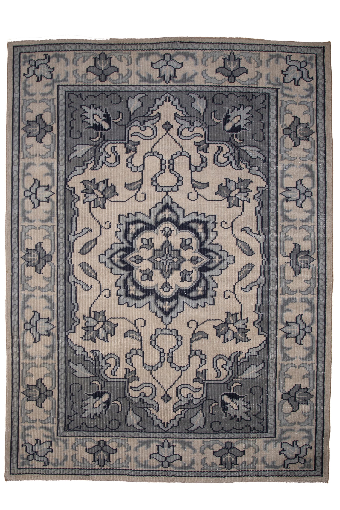 Woven with precision and grace, this Indo Kashan wool rug is a refined expression of Persian-inspired artistry. The cool-toned palette of slate blue, ash grey, and ivory creates a serene, sophisticated aesthetic. A central floral medallion radiates timeless symmetry, framed by intricate vines and lotus motifs. Hand-knotted using premium wool, the rug offers both luxurious texture and enduring quality. Its muted tones and balanced design lend a calming presence to modern and traditional interiors alike. This piece embodies heirloom craftsmanship and understated elegance, making it an ideal choice for collectors and connoisseurs who seek timeless charm and artistic authenticity.