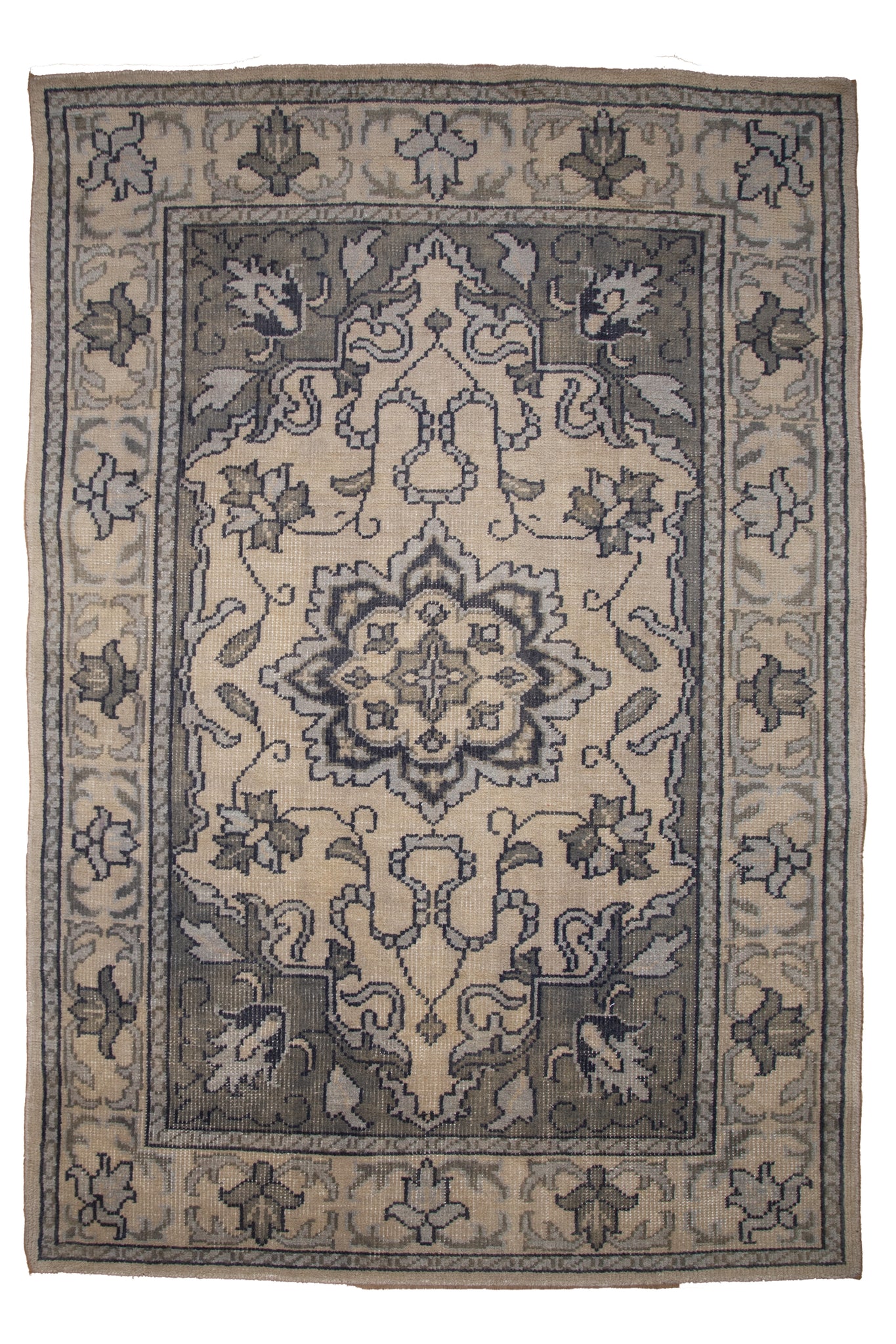 Crafted in the traditional Indo Kashan style, this exquisite wool rug exudes understated elegance with its muted greys and soft ivory tones. The intricately hand-knotted floral medallion sits gracefully at the center, framed by arabesque vines and stylized lotus blossoms. Each detail reflects the meticulous skill of seasoned artisans, woven from premium wool for a soft, durable texture. The soothing palette and symmetrical design make it a refined addition to modern, transitional, or classical interiors. This piece captures the poetic harmony of Persian inspiration with Indian craftsmanship—perfect for collectors and connoisseurs of timeless textile art. A quiet statement of luxury.