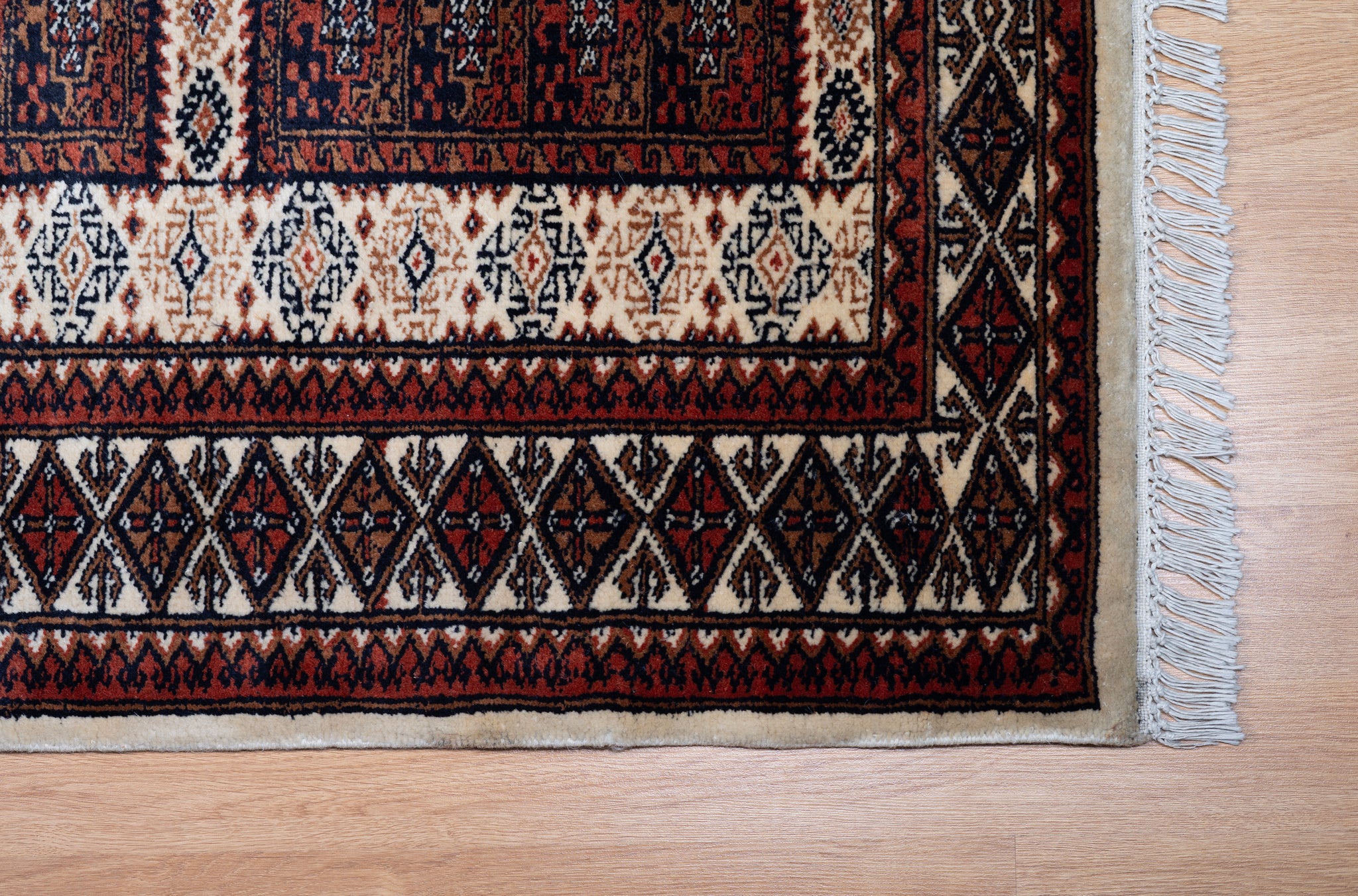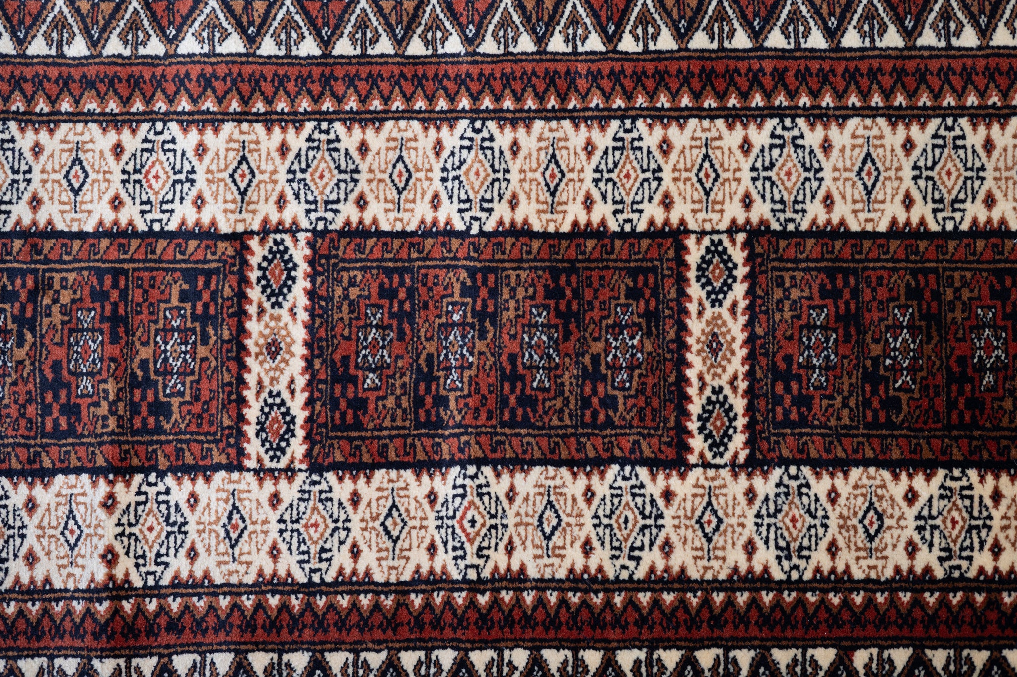 This finely hand-knotted Indian wool rug pays homage to tribal artistry with its striking geometric panel design. Woven using high-quality, handspun wool, its rich palette—deep rust, indigo, ivory, and earthy beige—exudes timeless elegance. The central panel features a linear medallion layout framed by intricate octagonal motifs, echoing nomadic symbolism and Central Asian roots. The bold border, adorned with interlocking star patterns, adds rhythm and structure. Each knot reflects traditional weaving precision, resulting in a dense, durable, and tactile surface. Ideal for collectors seeking understated sophistication, this rug blends cultural heritage with refined, rustic charm—perfect for both modern and classic interiors.