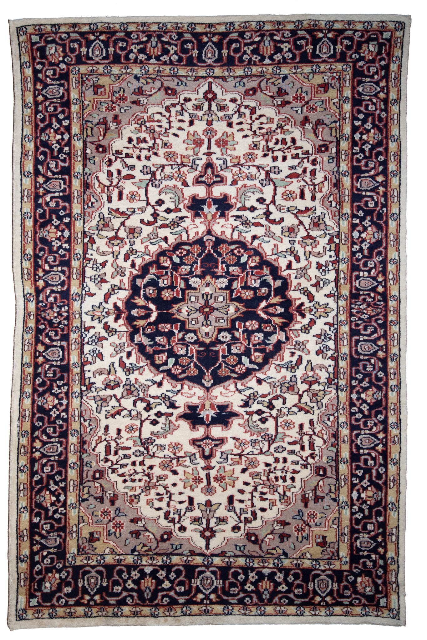 Ivory Medallion Indo Kashan Rug