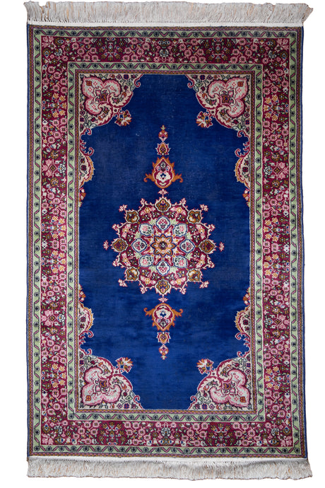 Royal Blue Kashmiri Wool Medallion Rug