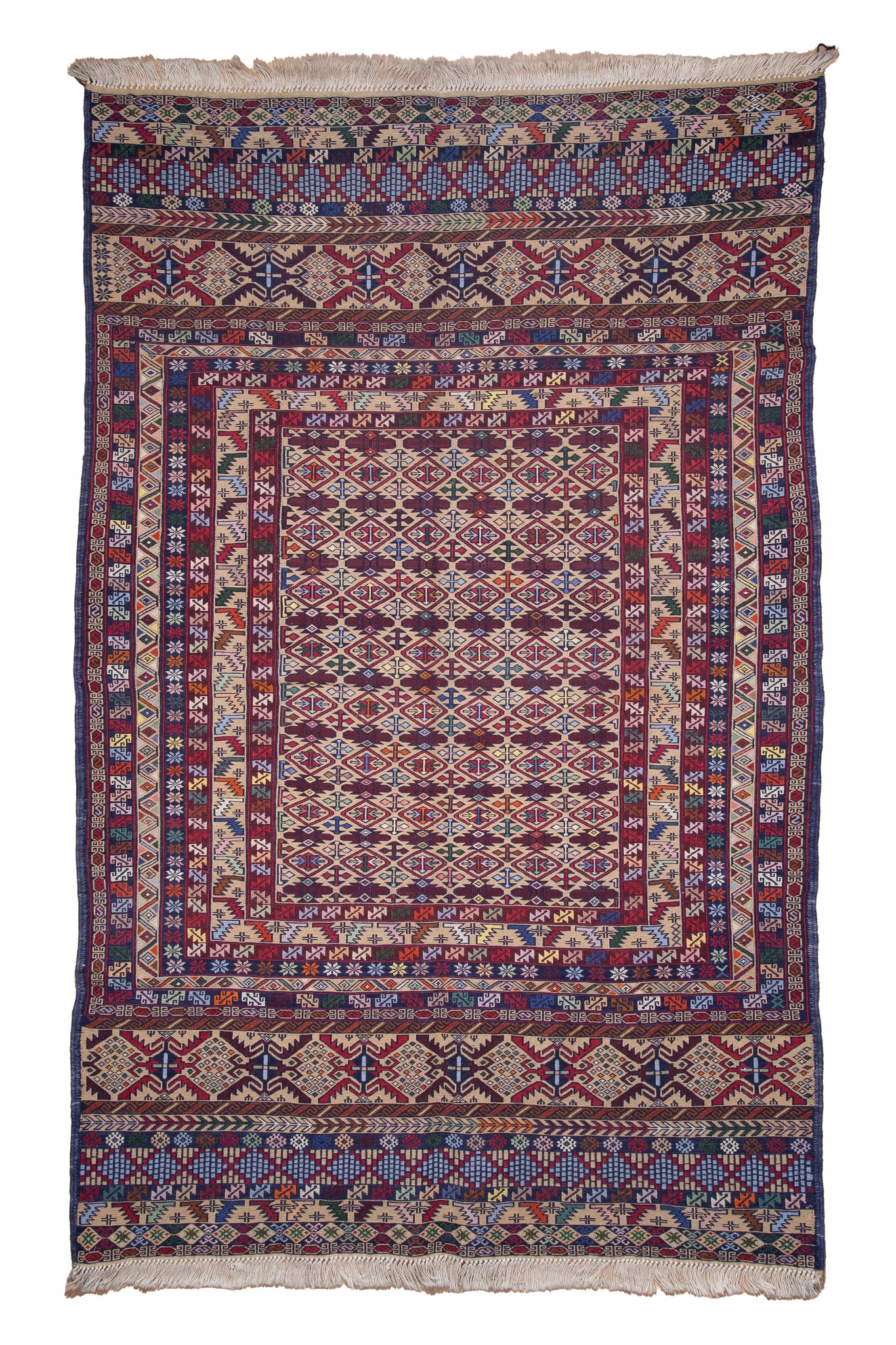 This vibrant handwoven Kazak rug is a symphony of colour and craftsmanship, bursting with radiant reds, saffron, cobalt, emerald, and ivory. Its geometric lattice of hooked diamonds and star medallions symbolizes protection and tribal unity—deeply rooted in the Caucasus weaving tradition. Woven from high-quality wool and dyed with natural pigments, each motif is framed by intricate borders that pulse with rhythm and harmony. The meticulous detailing and precise symmetry showcase the artisan's mastery. Bold yet refined, this rug effortlessly bridges heritage and contemporary decor, making it an ideal collector's piece or a striking foundation for a luxury interior space.