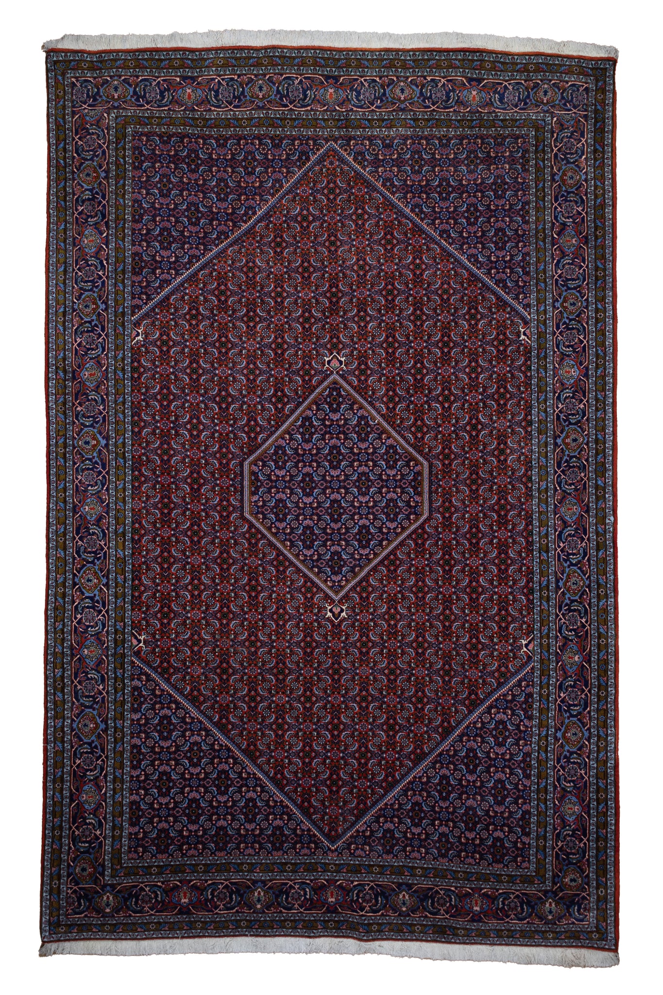 This vintage Feraghan rug exemplifies the refined elegance of 19th-century Persian weaving, crafted with an exceptionally high knot count in pure wool. Known for their delicate detailing and superb craftsmanship, Feraghan rugs are prized by collectors for their intricate precision and sophisticated visual rhythm. This piece features a regal hexagonal medallion seamlessly nested within a rich field of scrolling boteh and floral motifs, each element meticulously rendered with jewel-toned clarity. Deep garnet reds, sapphire blues, and muted ivory interplay harmoniously across the densely patterned surface, highlighted by a gracefully layered border that frames the composition with balance and poise. The high knot density not only enhances the rug’s durability but also allows for a finer, more painterly execution of the design. Whether showcased in a traditional salon or a contemporary interior, this rug represents a rare confluence of history, heritage, and refined artistry—making it a true heirloom investment for discerning connoisseurs.