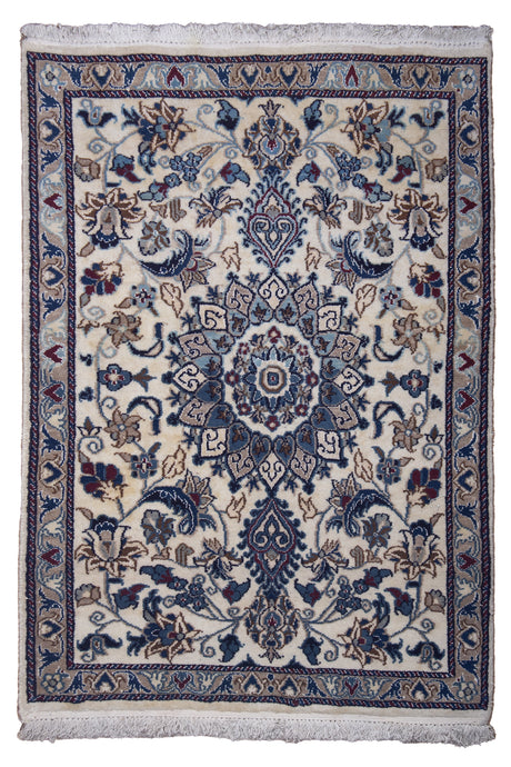 Ivory Blue Persian Nain Wool Rug