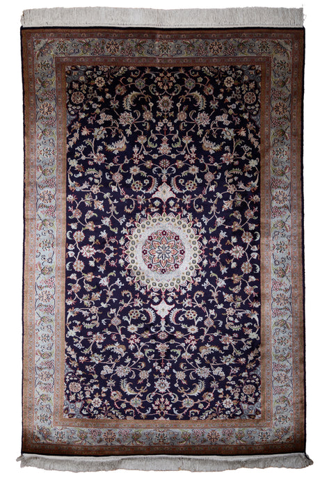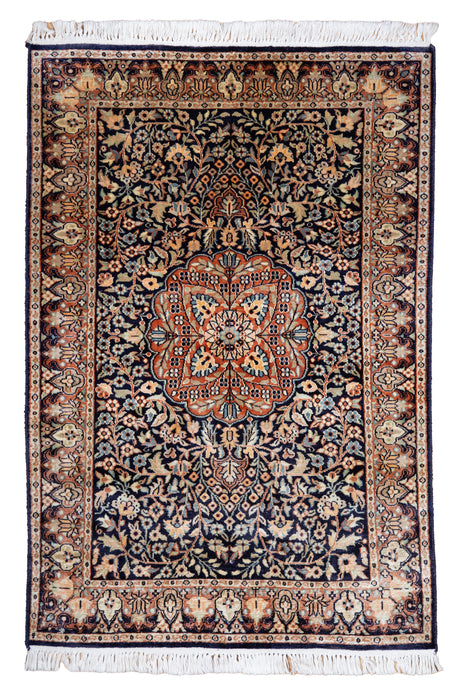 Kashmir Silk Rug – Midnight Medallion Bloom