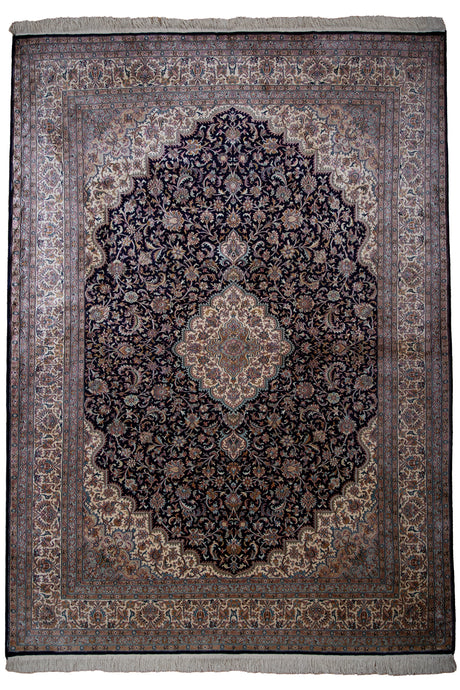 Midnight Bloom Kashan Silk Carpet