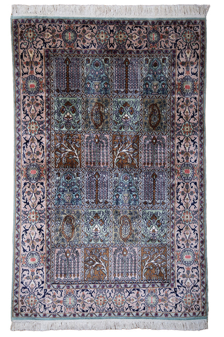 Pastel Garden Panel Silk Kashmiri Rug