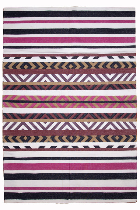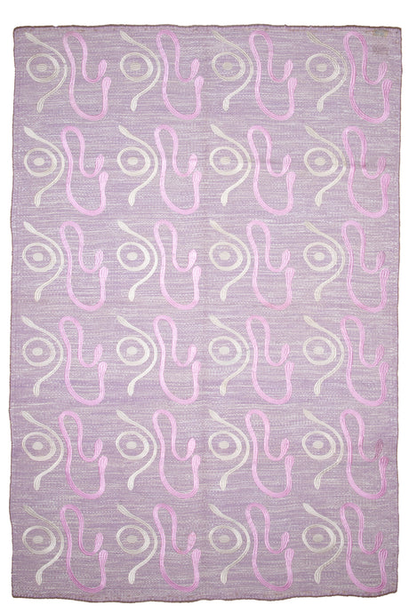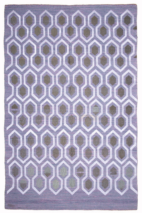 Lavender Geometric Wool Zari Dhurrie