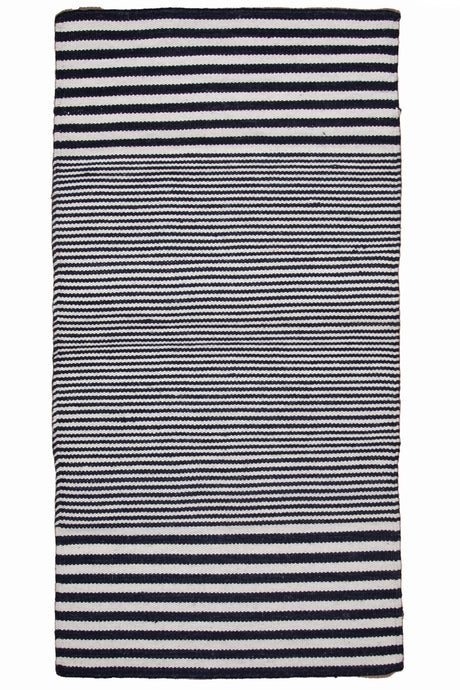 Navy and Ivory Striped Wool Dhurrie