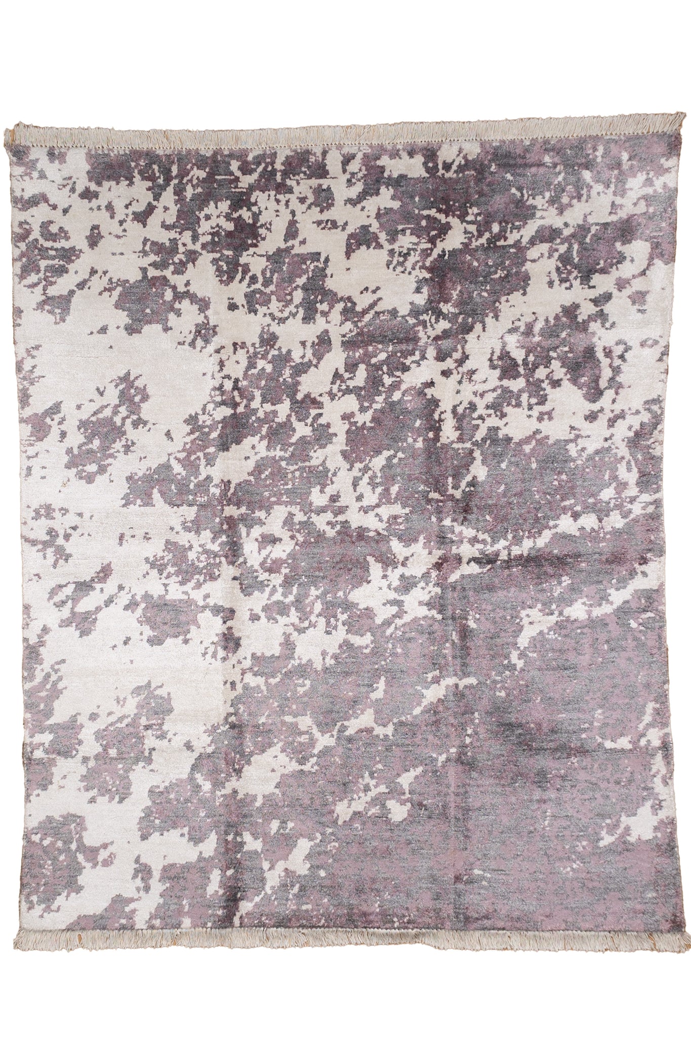 A whisper of modern elegance, this Indian silk rug captures the essence of understated luxury. Handwoven by skilled artisans, it features a refined abstract design in misty ivory and muted plum tones, reminiscent of drifting clouds or marbled textures. Crafted from pure silk, the surface glows with a soft luster, offering a tactile richness and visual depth that changes with light. The fluidity of the design reflects artistic spontaneity while maintaining a soothing palette ideal for contemporary interiors. This rug is not just decor—it’s a statement of sophistication, craftsmanship, and the quiet power of minimalism reimagined through Indian textile heritage.