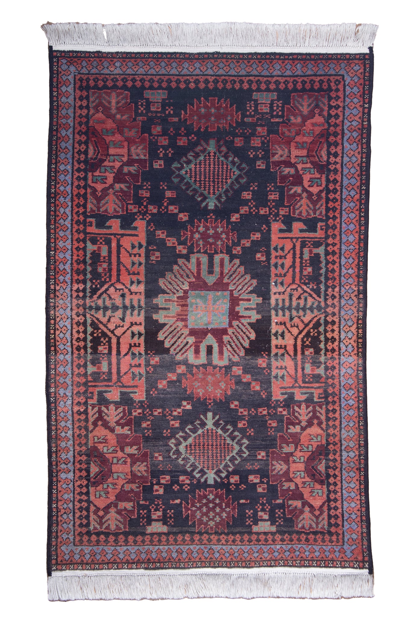 An evocative example of tribal elegance, this Antique Shirai Rug is a celebration of nomadic artistry and timeless heritage. Handwoven using handspun wool, its deep navy field is enriched by striking crimson medallions, geometric motifs, and a uniquely balanced border in muted purples and terracotta reds. The symmetrical design radiates with ancestral symbolism, echoing protection, fertility, and unity from the Shirai tribes of the Caucasus. Its soft pile and natural dyes evoke a warm, earthy patina developed through age. Ideal for collectors and connoisseurs, this rare piece is both a visual centerpiece and a soulful link to a bygone artisanal era.