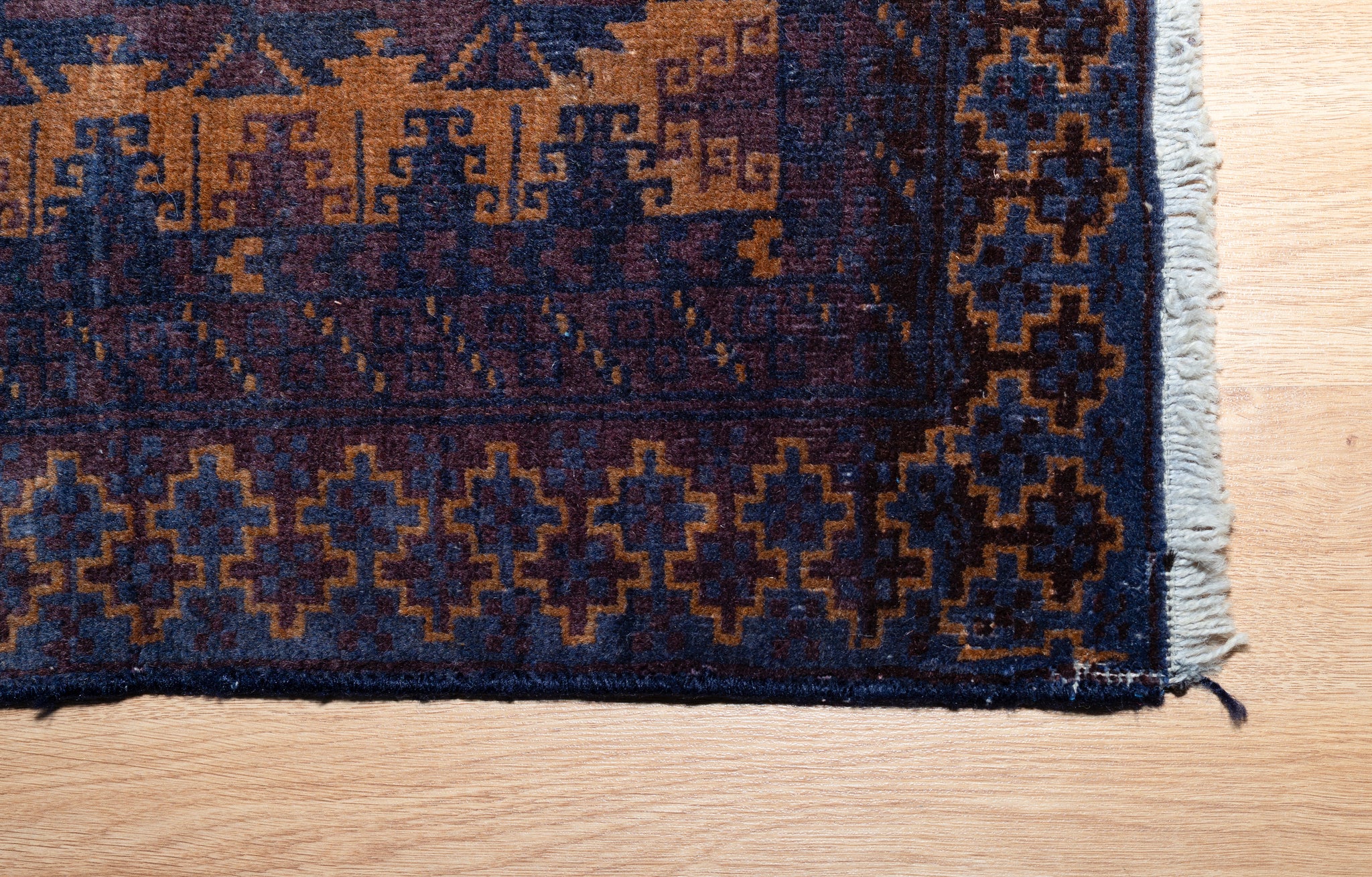 This exquisite Turkman rug captures the soul of nomadic artistry with its deep indigo field and warm terracotta motifs. Handwoven using time-honored techniques, the symmetrical lattice of tribal guls and stepped borders reflects centuries of Turkman heritage. The rich, vegetable-dyed palette creates a striking visual rhythm, subtly shifting under light, while the high-quality wool lends a matte elegance and tactile warmth. A true collector’s piece, this rug bridges tribal tradition and refined minimalism, ideal for both modern and classic interiors. Its understated complexity and earthy geometry offer timeless sophistication rooted in Central Asia’s enduring cultural legacy.